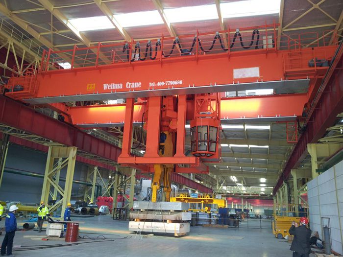 本夾鉗起重機(jī)夾鉗平行于主梁,用于鋼廠、船廠,港口、堆場(chǎng)和倉(cāng)儲(chǔ)等室內(nèi)或露天的固定跨間,裝卸及搬運(yùn)鋼板板坯、型材等物料。